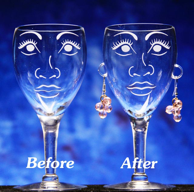 Add Ears to your etched character designs for a 3 dimensional crafting upgrade. Use the Face Elements Over N Over Glass Etching Stencils and some Armour Etch Glass Etching Cream to create a boundless cast of characters. Attach ears to the face for extra ornamentation opportunities with earrings or other dangling delights. Add some pizzazz to the tablescape when you make a custom assortment of festive folks.