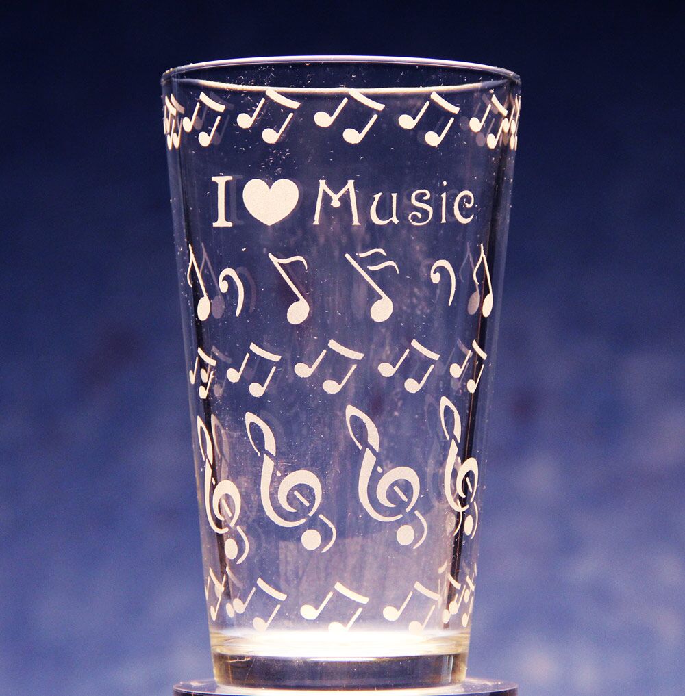 - Repeat the process of adding and etching treble clefs to either side of the one on the glass until you have achieved the desired amount.