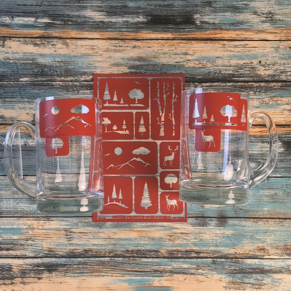 Scenic splendor meets cozy décor with these wilderness inspired At Home in Nature Mugs. Blend cabin chic with the enduring love of home for year-round designs using the Landscapes and HOME Over N Over Glass Etching Stencil Sheets and our Armour Etch Glass Etching Cream. Nature themed accessories make refreshing additions to bathrooms, end tables and plant ensembles.