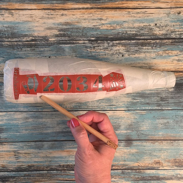 2. Follow the etching cream instructions to etch the design onto the bottle.